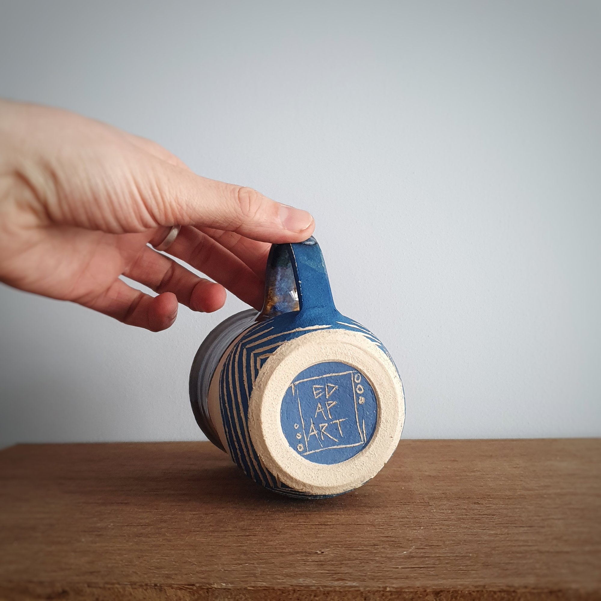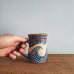 Hand-thrown with an Irish white stoneware clay with hand painted and carved ocean waves, for those of you that always hear the ocean calling! Although microwave and dishwasher safe, handwashing is recommended to enhance the quality and life span of your piece. Remember, all the oldest surviving ceramics never got this modern treatment!