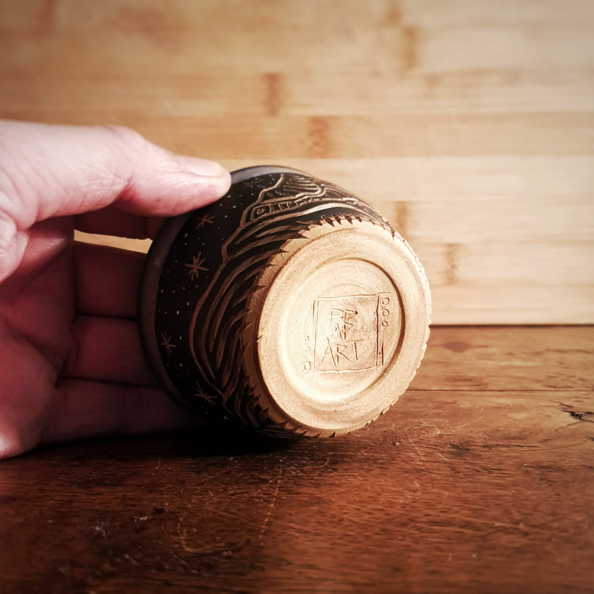 Hand thrown with buff clay, hand carved and fired to 1220°C. Dishwasher and microwave safe, but to enhance the life span of your piece, handwashing as often as possible is recommended.