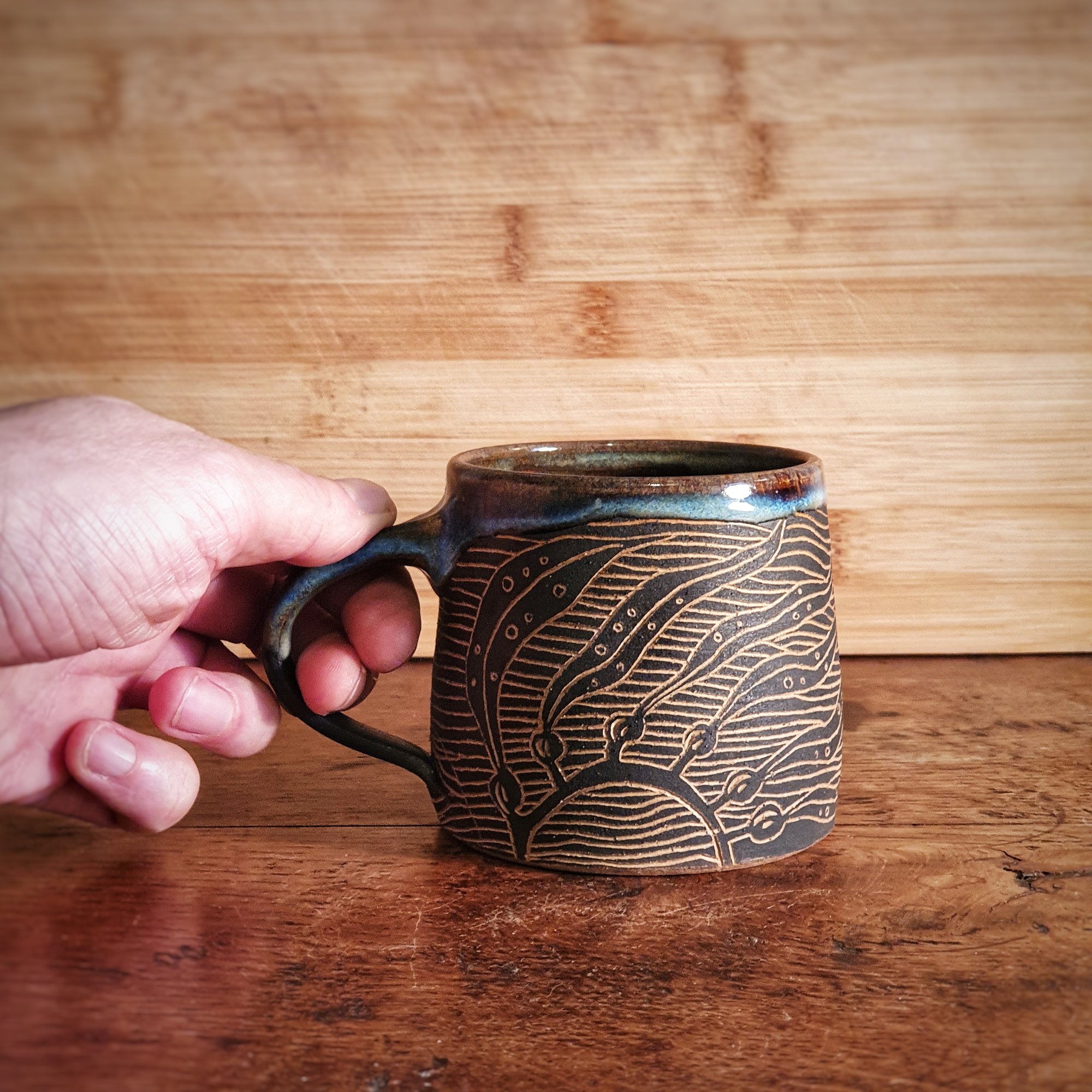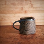Gwymon is the Cymraeg word for Seaweed and this is the Seaweed sgraffito mug, perfect for pairing with laverbread on toast!