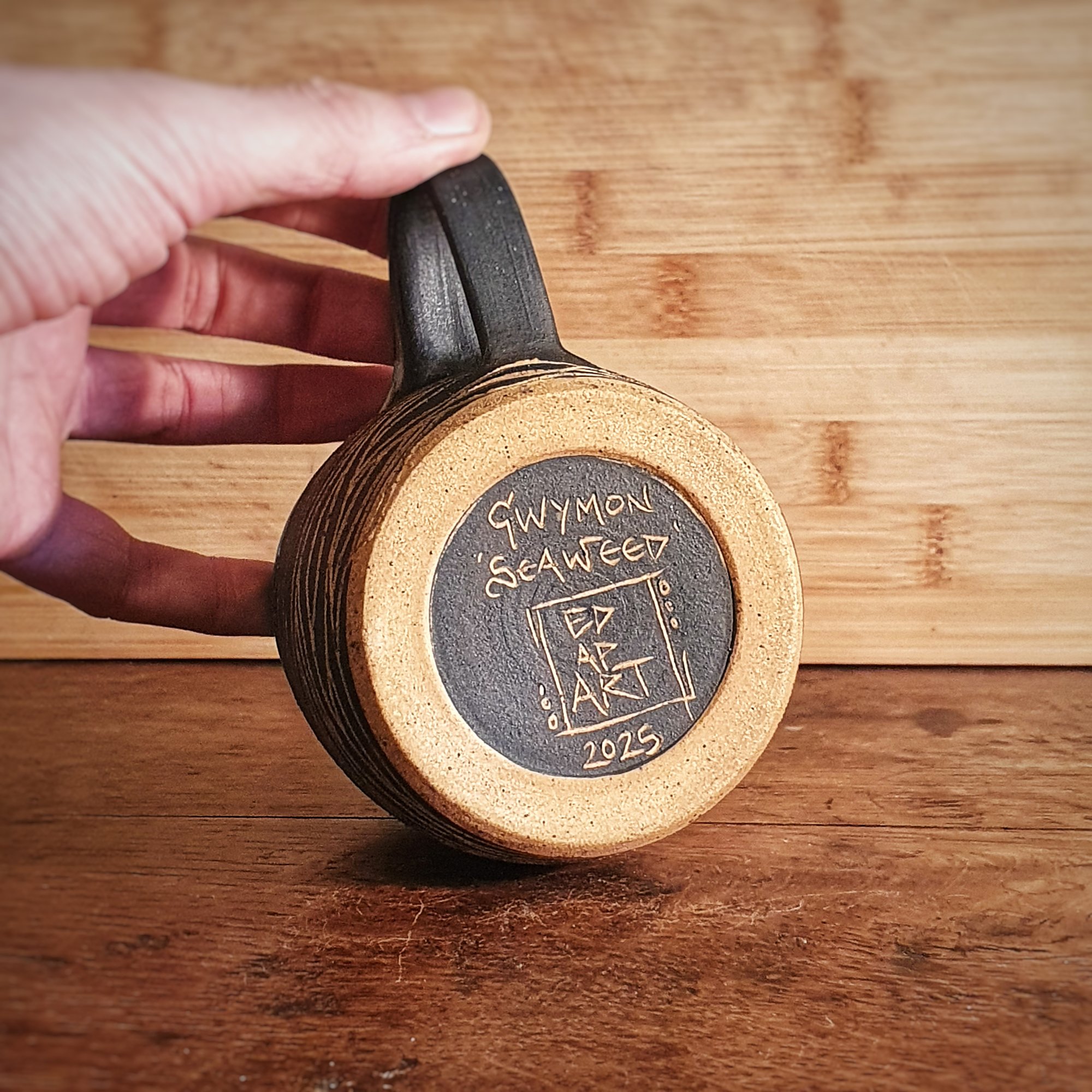 Gwymon is the Cymraeg word for Seaweed and this is the Seaweed sgraffito mug, perfect for pairing with laverbread on toast!