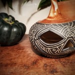 2nds Sgraffito Pumpkin lantern. This one has a small split in the eye (see images) which thankfully doesn't affect the structure or the practicality of the piece but unfortunately makes it imperfect hence the lower price.