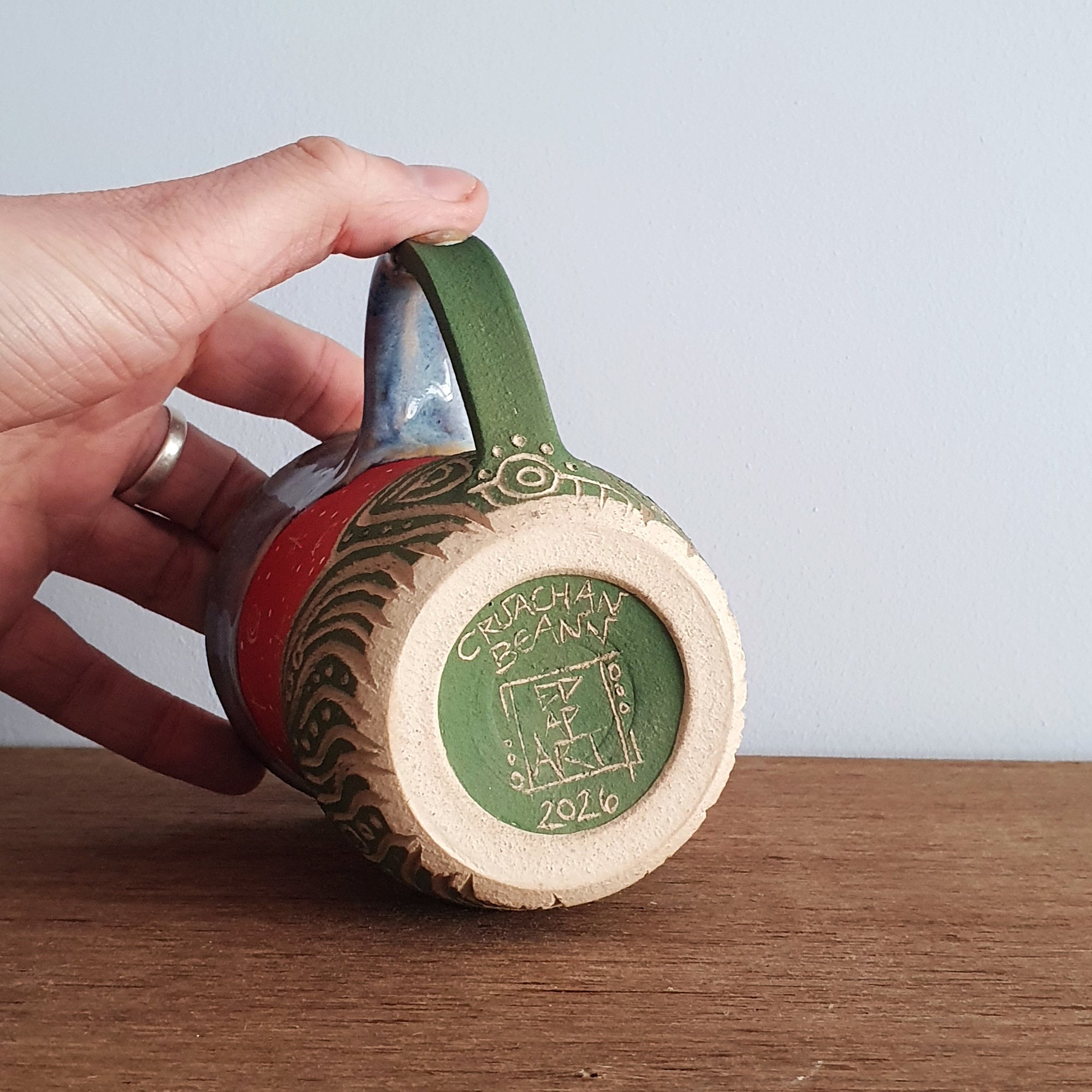 Made with a grogged (rough textured) white, Irish stoneware clay fired to 1220°C. Although microwave and dishwasher safe, handwashing is recommended to enhance the quality and life span of your piece. Remember, all the oldest surviving ceramics never got this modern treatment!