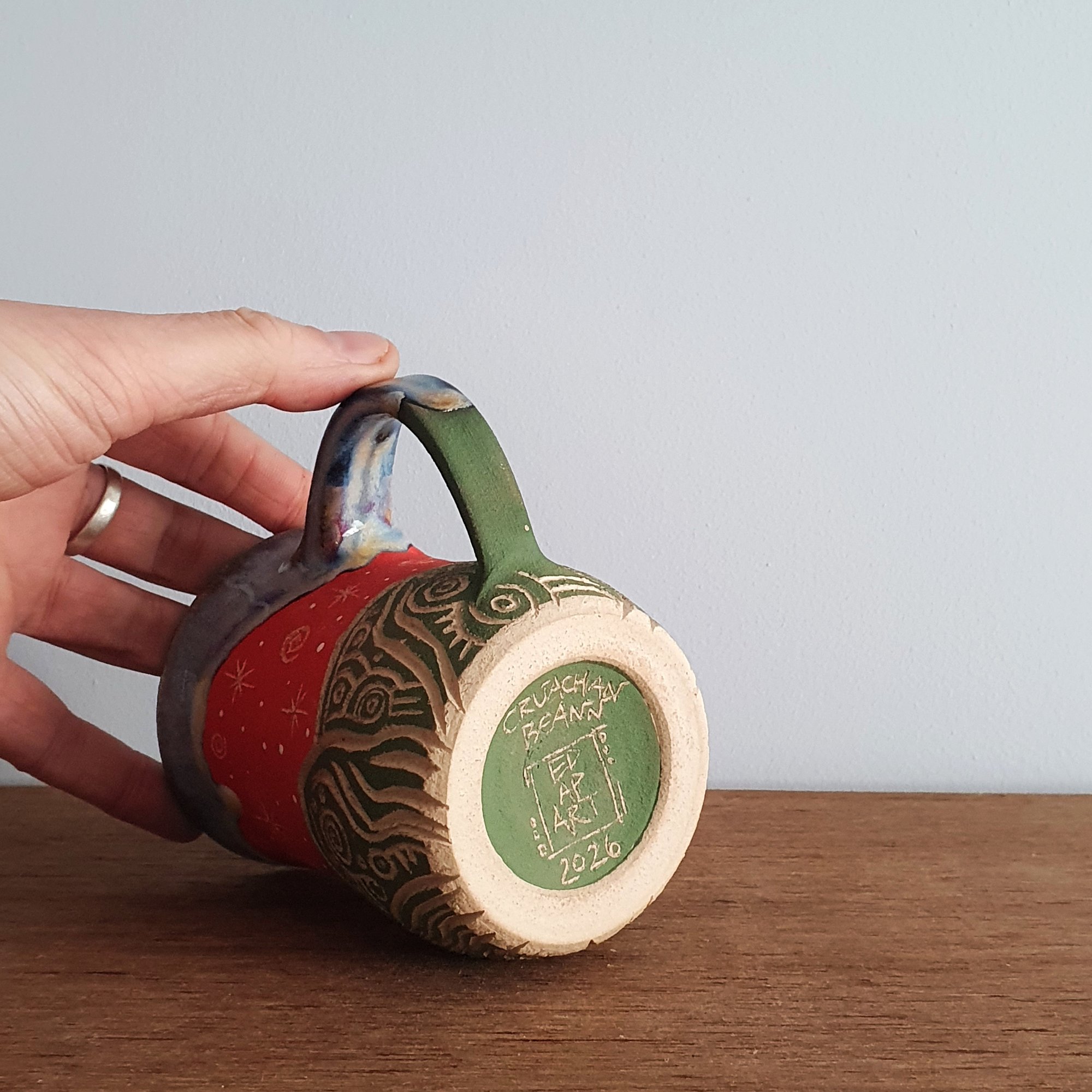 Made with a grogged (rough textured) white, Irish stoneware clay fired to 1220°C. Although microwave and dishwasher safe, handwashing is recommended to enhance the quality and life span of your piece. Remember, all the oldest surviving ceramics never got this modern treatment!